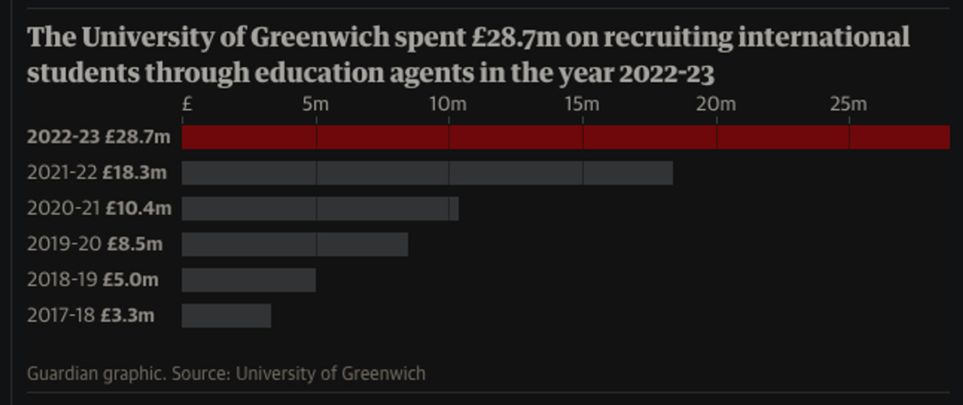 The lure of significant financial gains has led agents to potentially place underqualified students into British universities.