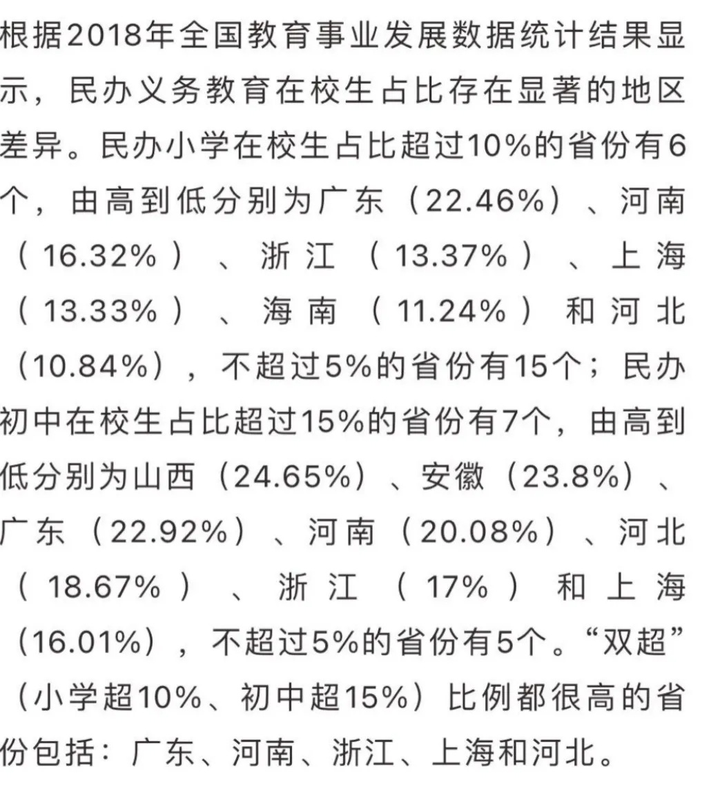 Many may not grasp the significance of this figure, thinking that the education they receive is niche and doesn’t exceed 5%. However, they would be mistaken. According to public education data from 2018, there were six provinces where the proportion of private primary schools exceeded 10%, with Guangdong, bolstered by Shenzhen, reaching a staggering 22.46%.